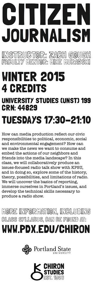 Look What’s Under this Rock is a news radio show created collaboratively by the students of Citizen Journalism in the Chiron studies program at Portland State University and in partnership with KPSU.org. As self-taught, citizen journalists, we report on topics that are relevant to our immediate communities and personal concerns. We see journalism as a vehicle for our own civic engagement and investment in political, economic, social and environmental issues. We make news that matters to us, and contribute thoughtfully to the public media landscape.